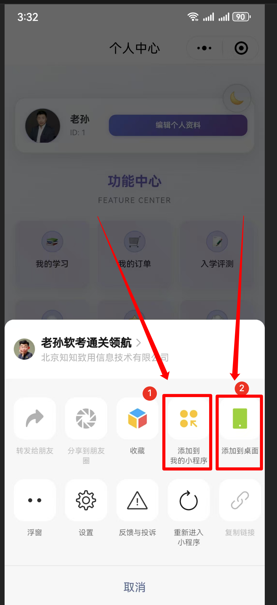 2)分别加入“我的小程序”和“添加到桌面”,这样方便再次访问