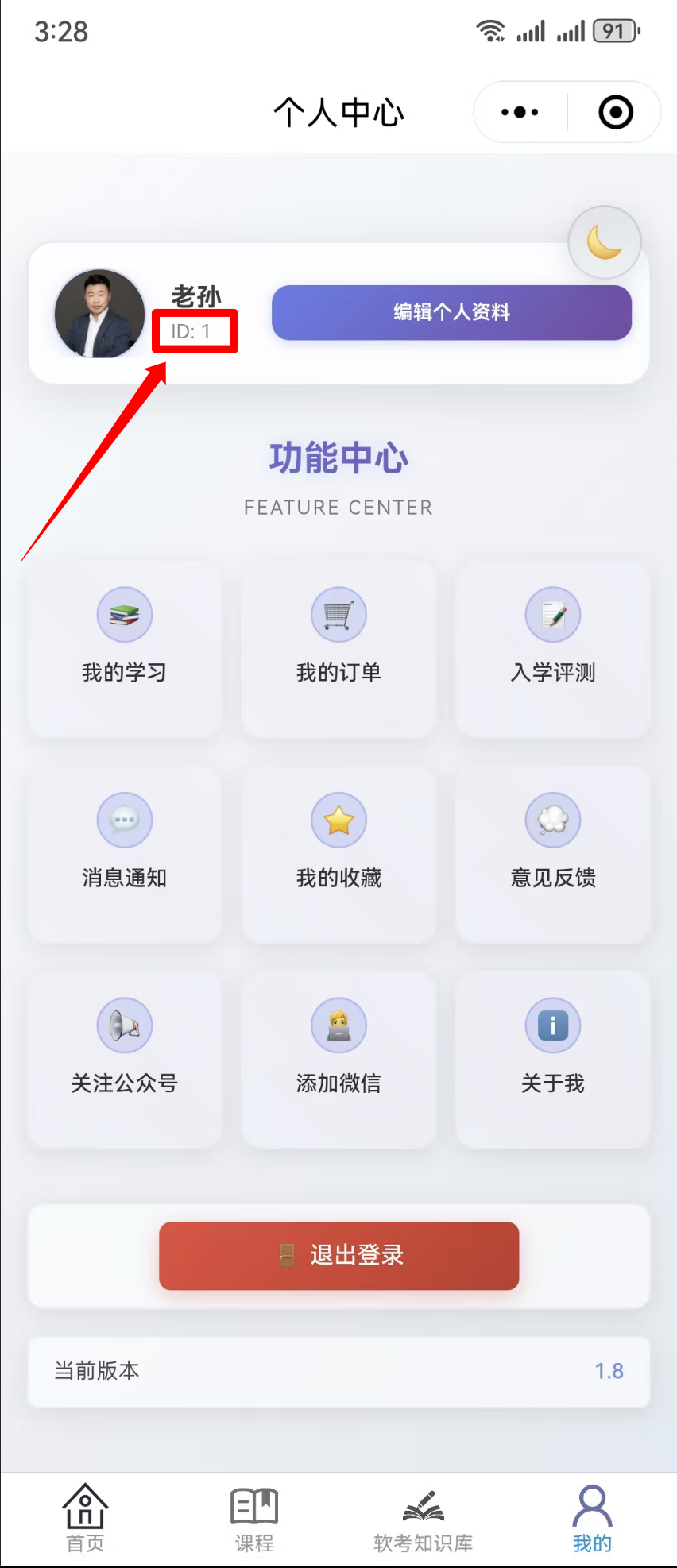 2. 将您的 用户ID 通过微信发送给老孙,以便为您开通课程权限,建立学习档案。